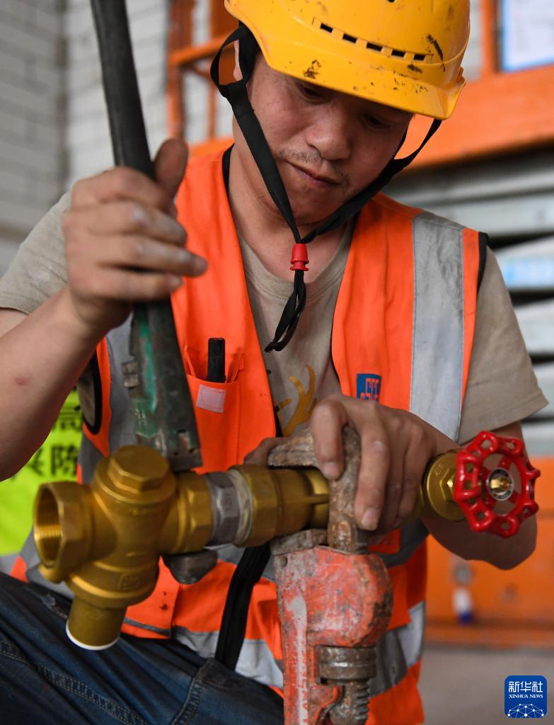 4月25日,在深圳前海泰康國際醫院項目工地,建筑工人參加閥門組裝工藝技能比拼。