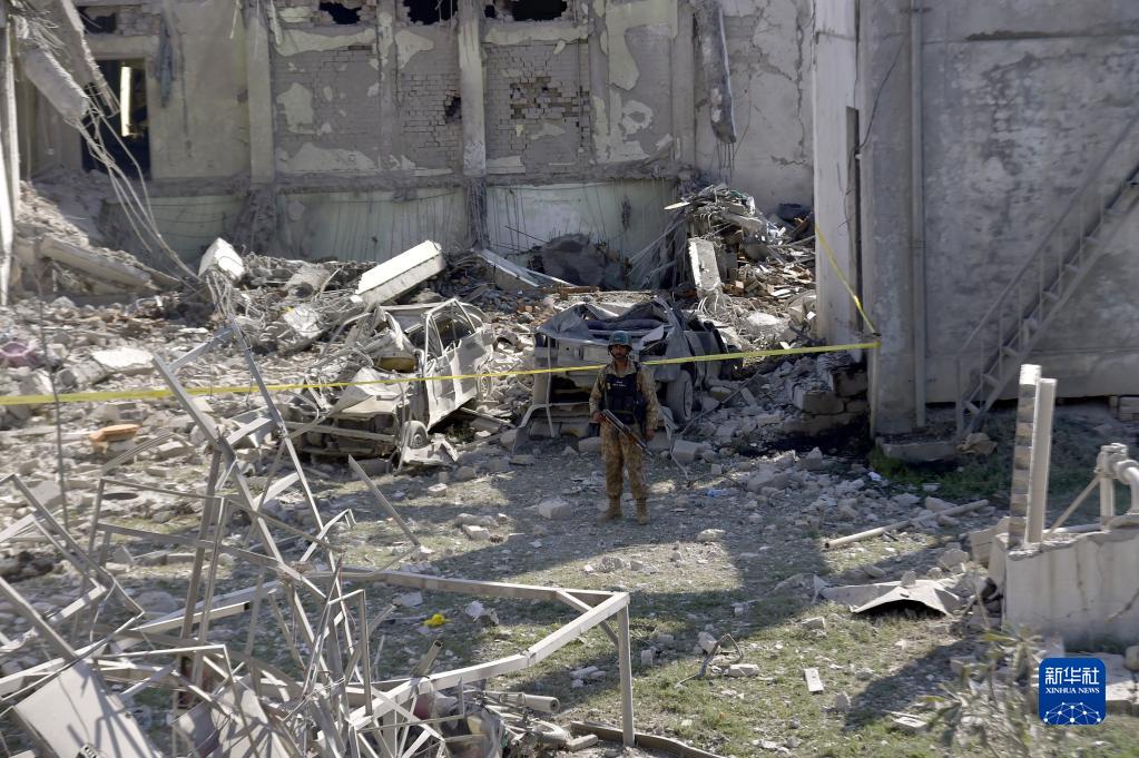 4月25日,在巴基斯坦斯瓦特地區,士兵在爆炸襲擊現場執勤。