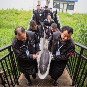 當(dāng)日,來自長江天鵝洲故道的4頭遷地保護(hù)長江江豚分批順利放歸進(jìn)入長江干流新螺和石首江段。這是我國首次開展遷地保護(hù)長江江豚野化放歸工作,此舉對促進(jìn)長江江豚自然種群數(shù)量回升,推動(dòng)長江江豚保護(hù)技術(shù)發(fā)展具有重要意義。