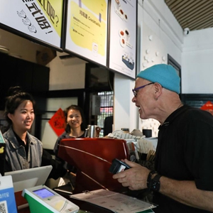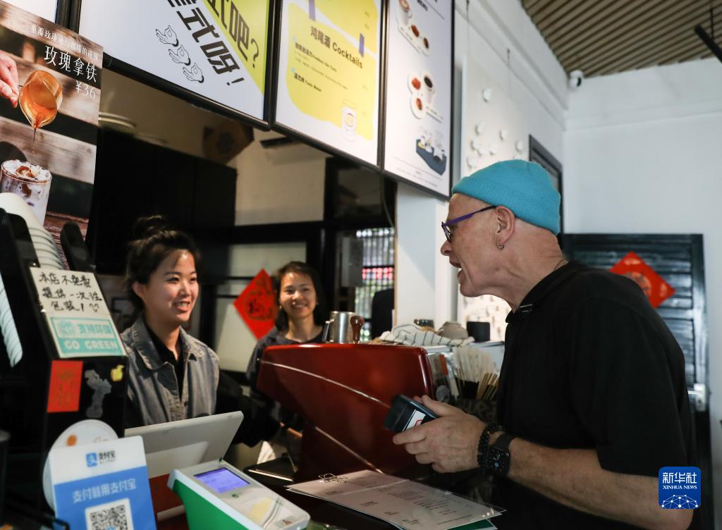 托爾斯滕·尤雷爾在景德鎮一家咖啡店點單(4月20日攝)。