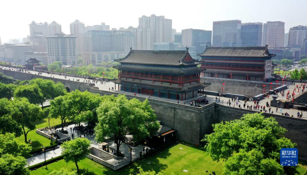 西安明城墻永寧門(4月25日攝,無人機照片)。