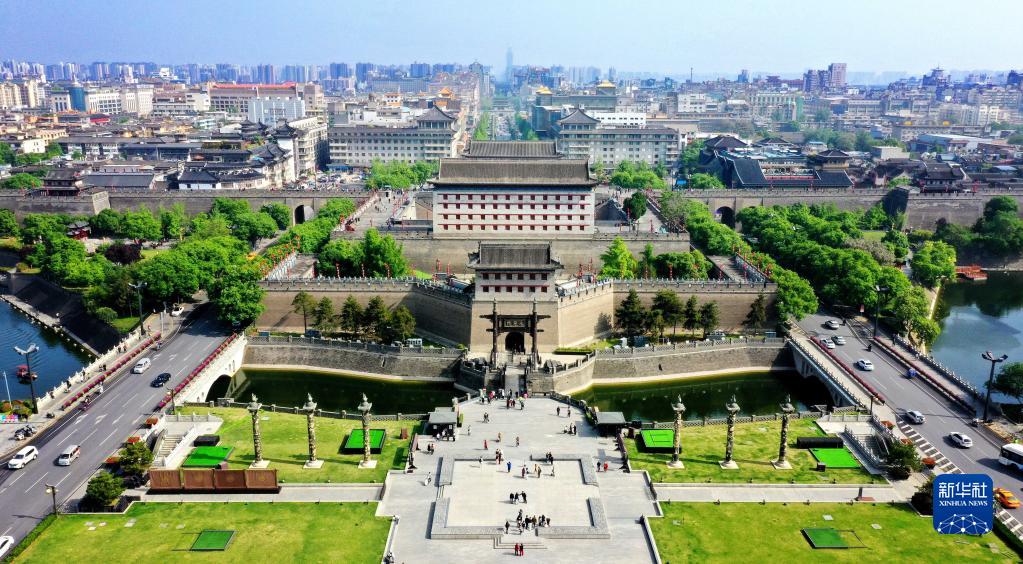 西安明城墻永寧門(4月25日攝,無人機(jī)照片)。