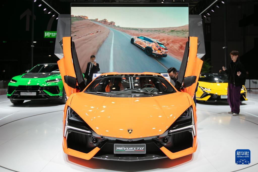 4月25日拍攝的在上海車展上進行亞太首秀的蘭博基尼首款HPEV高性能V12混合動力超級跑車Revuelto。