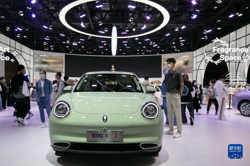 4月25日,參觀者體驗(yàn)歐拉好貓展車(chē)。