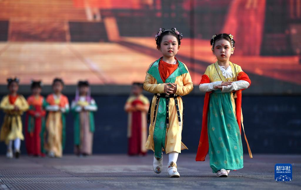 4月25日,華服走秀在西安大唐不夜城步行街舉行。
