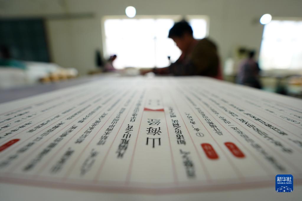 4月25日,河北南宮華寶古籍印刷有限公司工人在制作線裝書(shū)。
