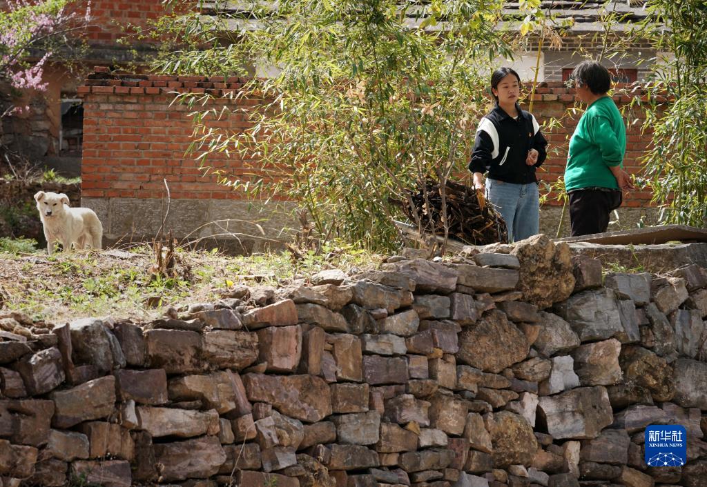 陳曉麗(左)和村民桑啟英聊天(4月18日攝)。新華社記者 李安 攝