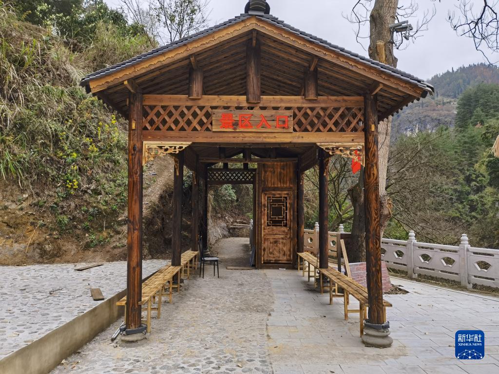 這是2023年3月18日拍攝的正在升級(jí)改造的貴州省開陽縣香火巖瀑布景區(qū)入口(手機(jī)照片)。