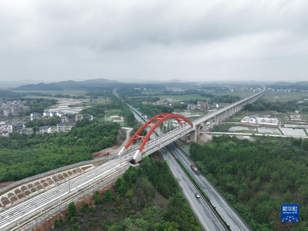 俯瞰昌景黃高鐵(4月25日攝,無人機照片)。