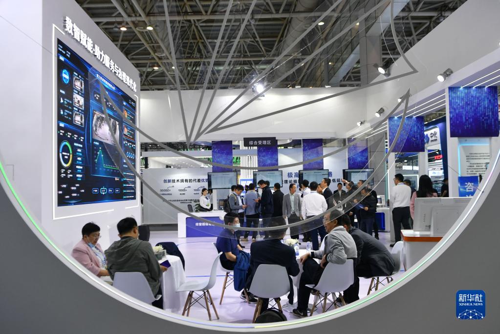 4月26日在第六屆數字中國建設成果展覽會上拍攝的數智賦能·助力服務與治理現代化展區一景。