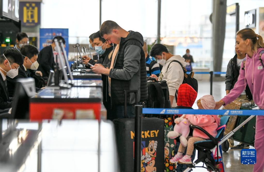 4月25日,南航工作人員在為旅客辦理值機手續。