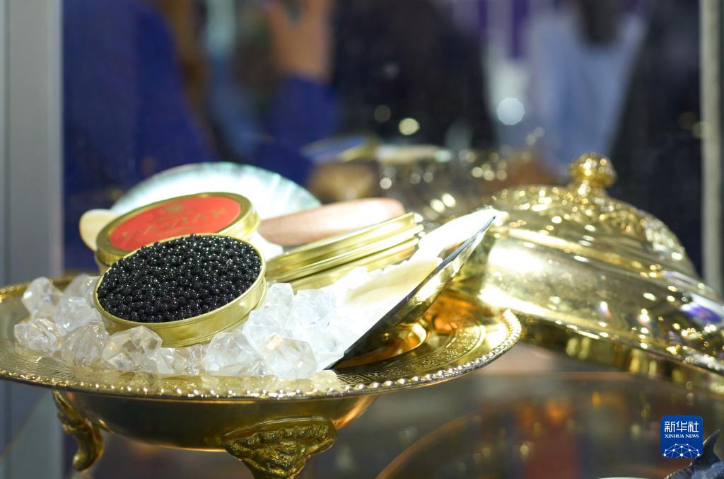 這是4月25日在西班牙巴塞羅那舉行的全球水產品博覽會上拍攝的魚子醬。