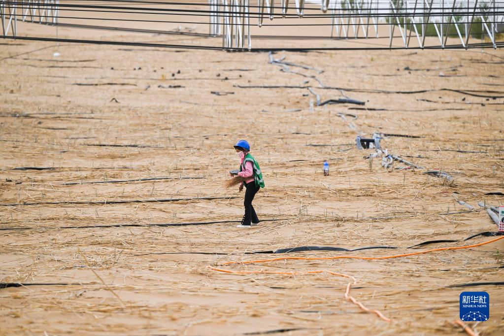 近日,在內蒙古自治區杭錦旗億利庫布其沙漠光伏治沙基地,工人們忙著在光伏架下種植耐旱苗木,用于防風固沙。目前,億利庫布其沙漠光伏治沙基地正在建設中,此次規劃種植面積上萬畝。