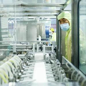 4月26日,在山東省臨沂市臨沭縣一家農機企業,工人在調試機械。