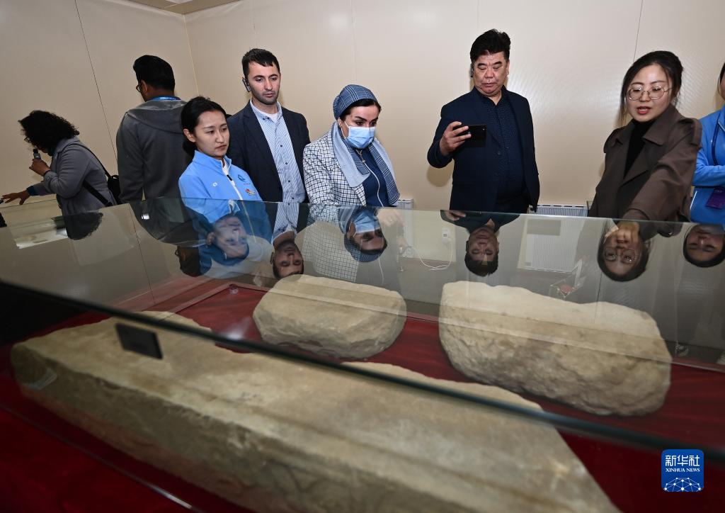 4月26日,外賓在陜西石峁遺址文物醫(yī)院展廳參觀調(diào)研。