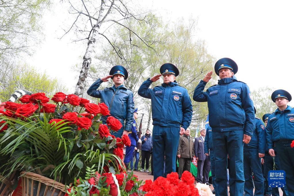 4月26日,白俄羅斯緊急情況部人員參加在白俄羅斯首都明斯克舉行的切爾諾貝利核事故37周年紀念活動。