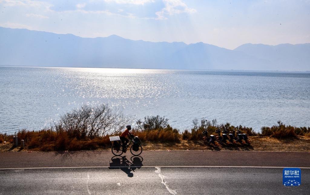 4月19日,來(lái)自廣東的騎行愛(ài)好者潘有輝騎行在云南大理洱海邊。數(shù)月前他從廣東佛山出發(fā),一路騎行抵達(dá)大理。