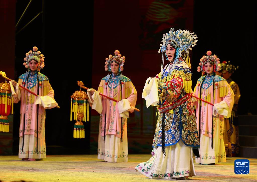 4月26日,演員在開幕式演出現場表演秦腔、晉劇、滇劇、河北梆子等多劇種版《大登殿》。
