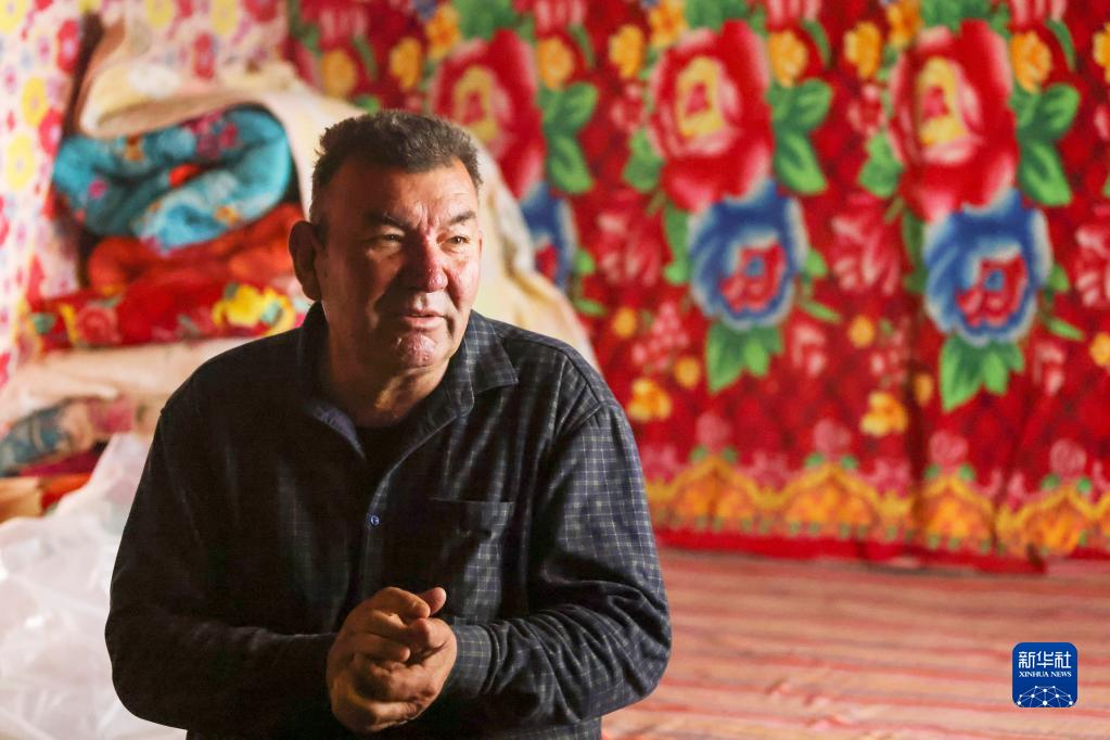 新疆尉犁縣,在弟弟家,爾肯·熱衣木和家人聊天(4月1日攝)。