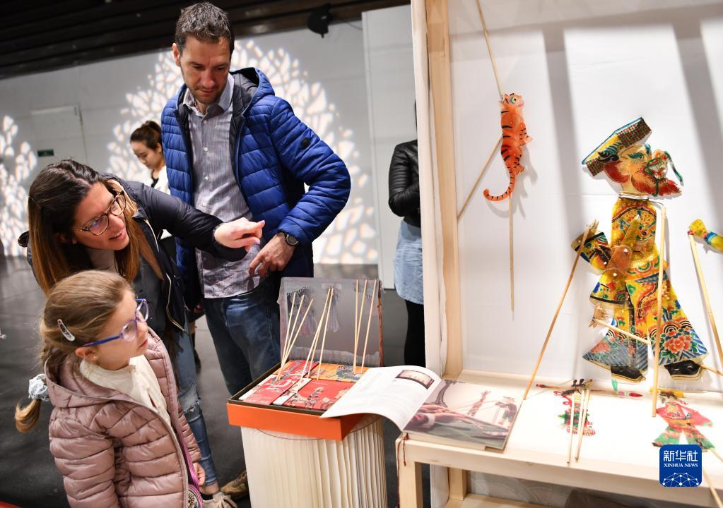 4月25日,在意大利佛羅倫薩舉辦的國際手工藝展覽會上,觀眾在中國皮影文化展臺前駐足。