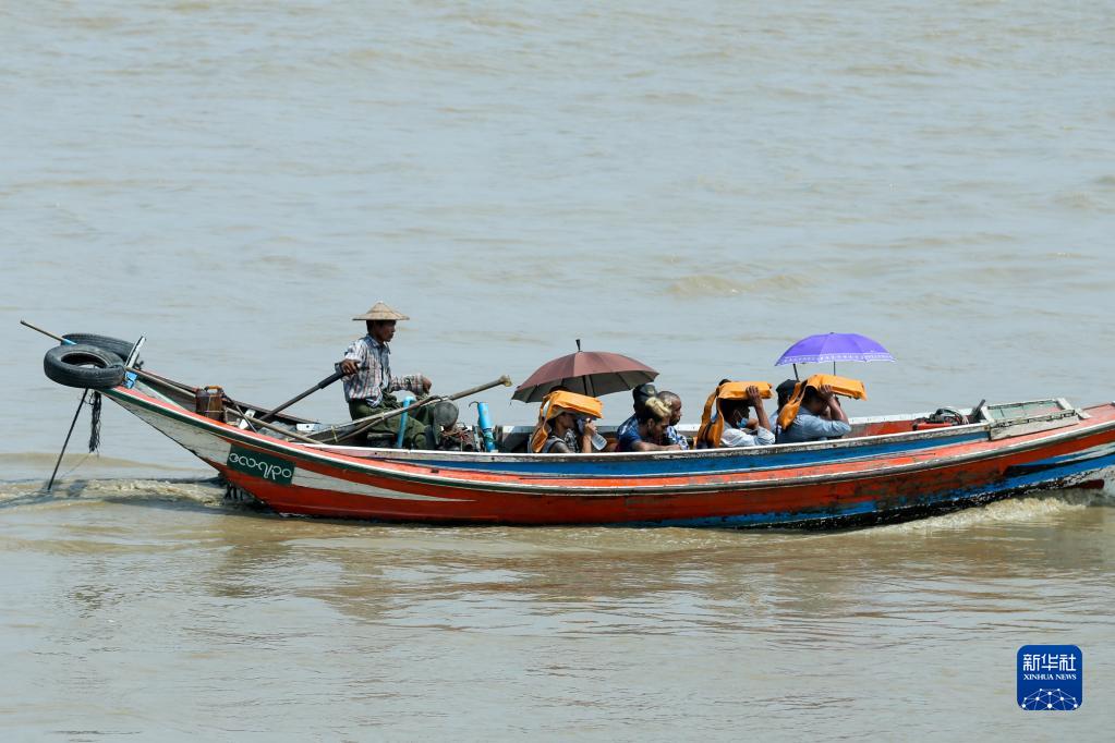4月27日,人們在緬甸仰光的仰光河上乘船出行。
