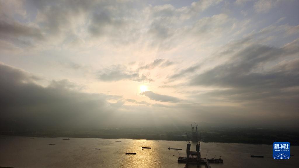 這是劉理4月21日早晨在塔吊上拍攝的馬鞍山公鐵兩用長江大橋建設現場。