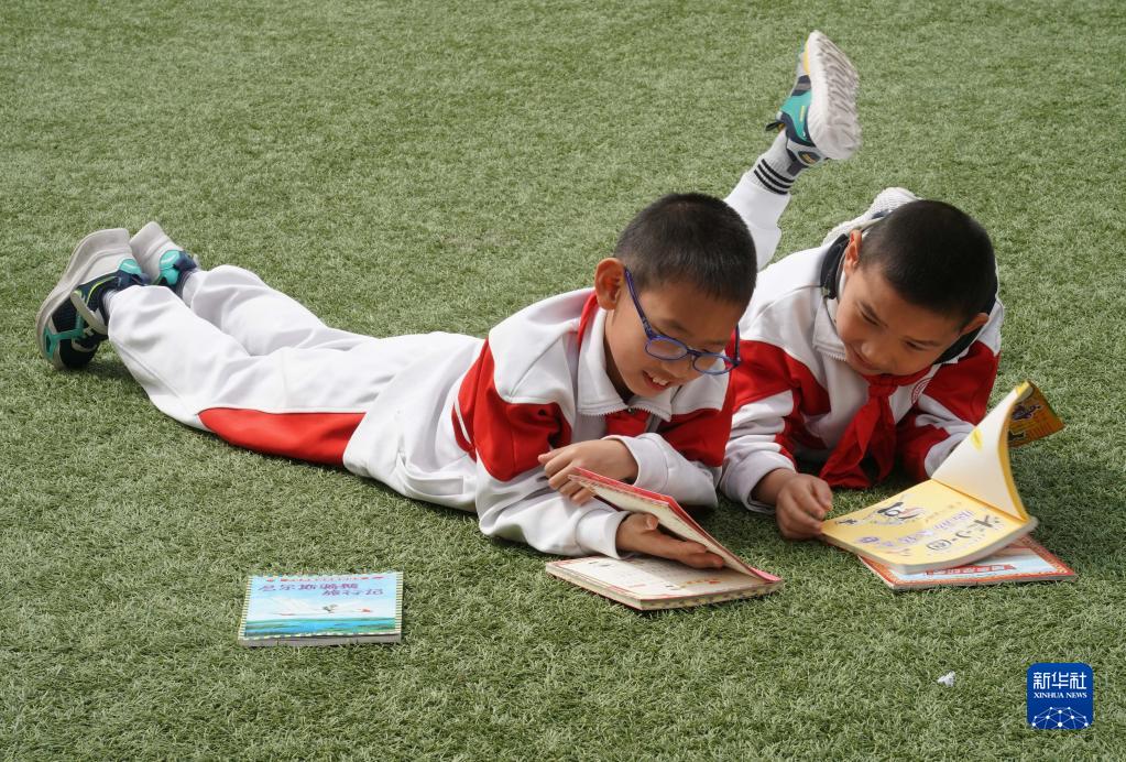 4月28日,在人大附中實(shí)驗(yàn)小學(xué),學(xué)生在活動(dòng)中閱讀圖書。