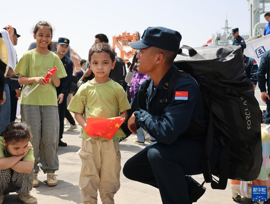 4月27日,從蘇丹撤離人員乘坐中國海軍軍艦抵達(dá)沙特阿拉伯吉達(dá)港。
