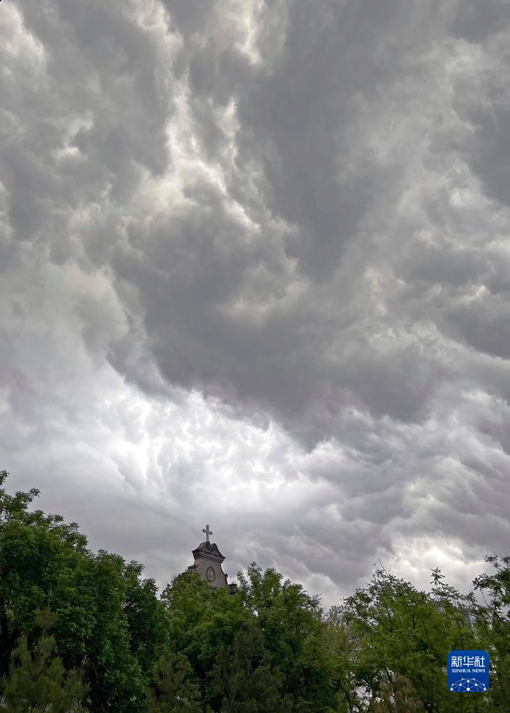 這是4月28日拍攝的北京市宣武門教堂上空的云層(手機照片)。