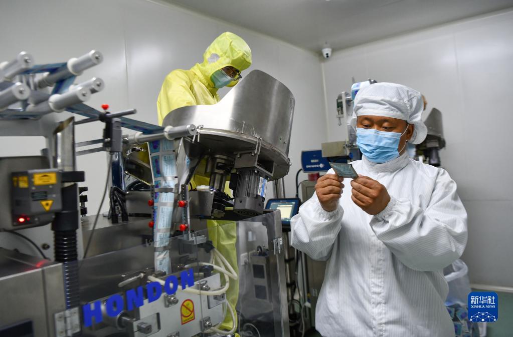 普窮次仁在檢查藏藥內(nèi)包生產(chǎn)工序(4月20日攝)。