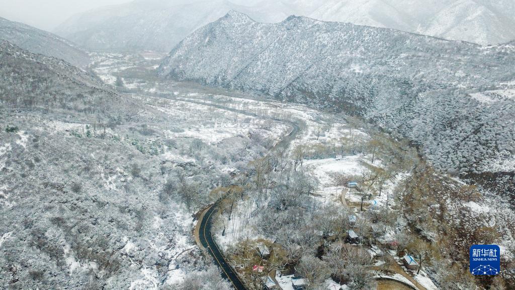 4月28日拍攝的內蒙古自治區呼和浩特市北郊的大青山自然保護區雪景(無人機照片)。