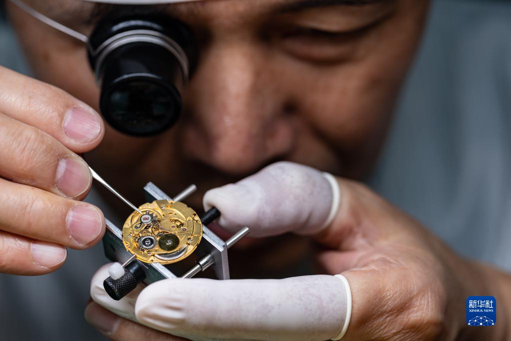 4月25日,在位于深圳的飛亞達鐘表大廈,劉中華在裝配手表。新華社記者 毛思倩 攝