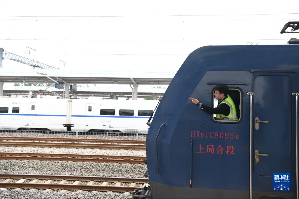 4月28日,尚志雄值乘的中歐班列途經(jīng)六安站。新華社記者 劉軍喜 攝