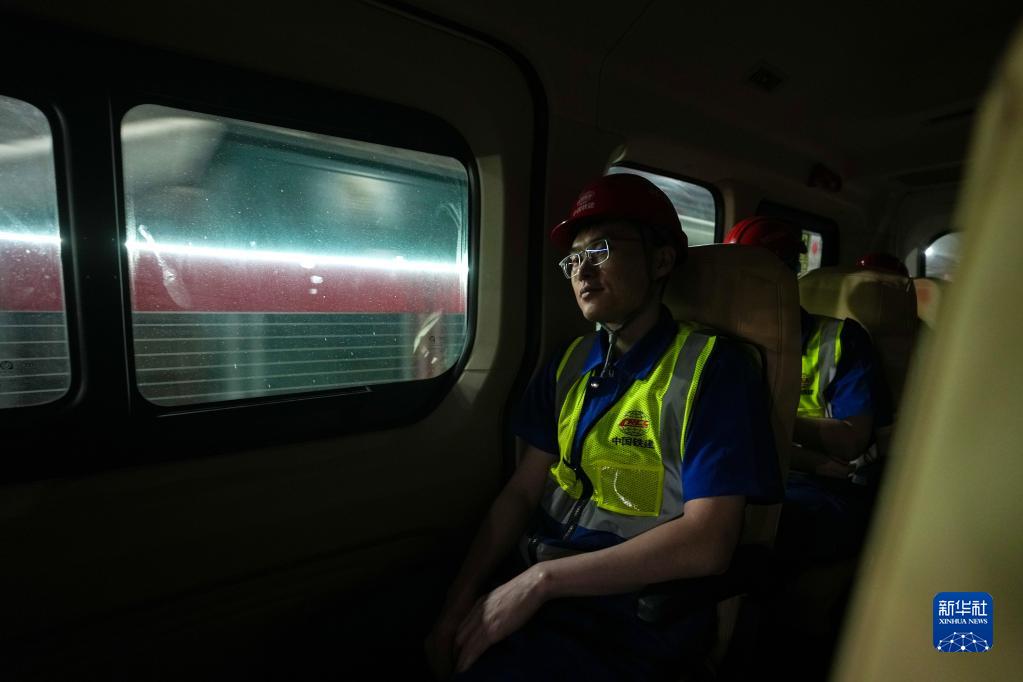 早上6點多,黃魯下井后乘坐車輛前往盾構機開始一天的工作(4月19日攝)。