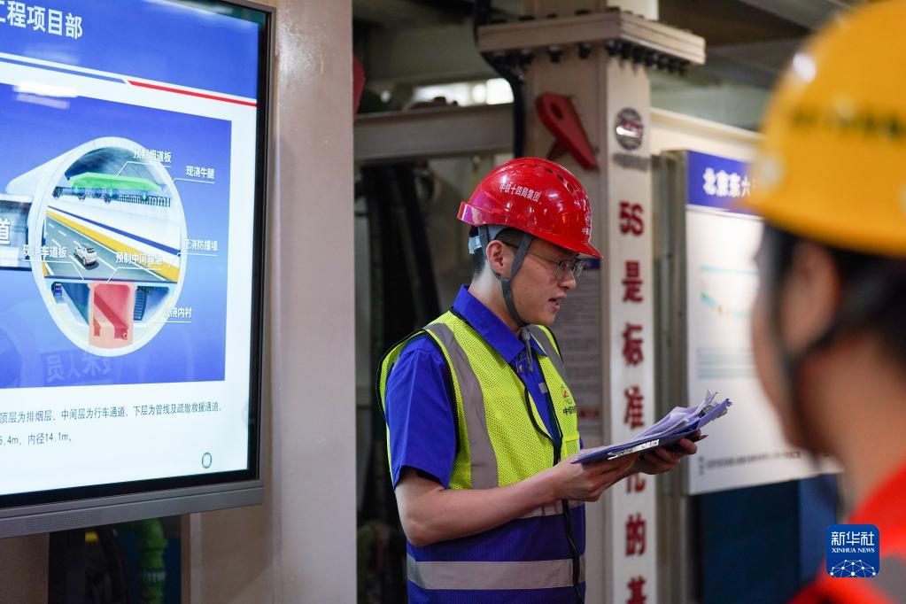 在北京東六環(huán)入地改造工程的西線隧道內(nèi),黃魯在開班前會(4月19日攝)。