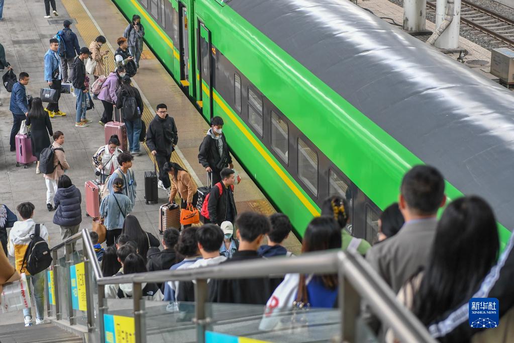 4月29日,旅客在長(zhǎng)春站有序乘車。