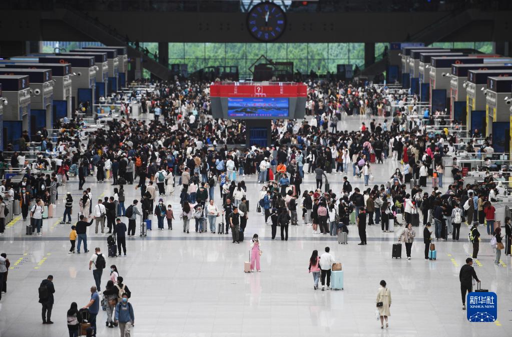 4月29日,旅客在鄭州東站候車大廳內(nèi)候車。