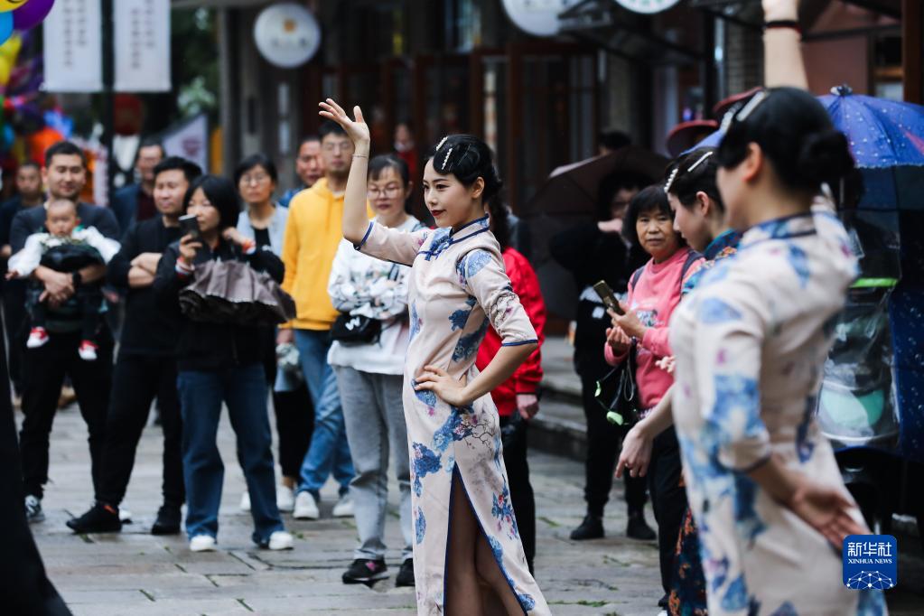 4月29日,演員在浙江省杭州市余杭區瓶窯老街表演。