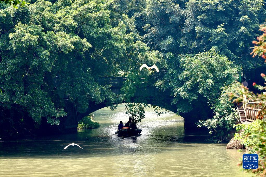 4月29日,游客乘坐游船游覽福州白馬河。