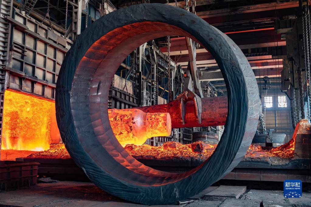 在位于黑龍江省齊齊哈爾市的中國一重集團有限公司生產車間,鍛件正回爐加熱(4月18日攝)。