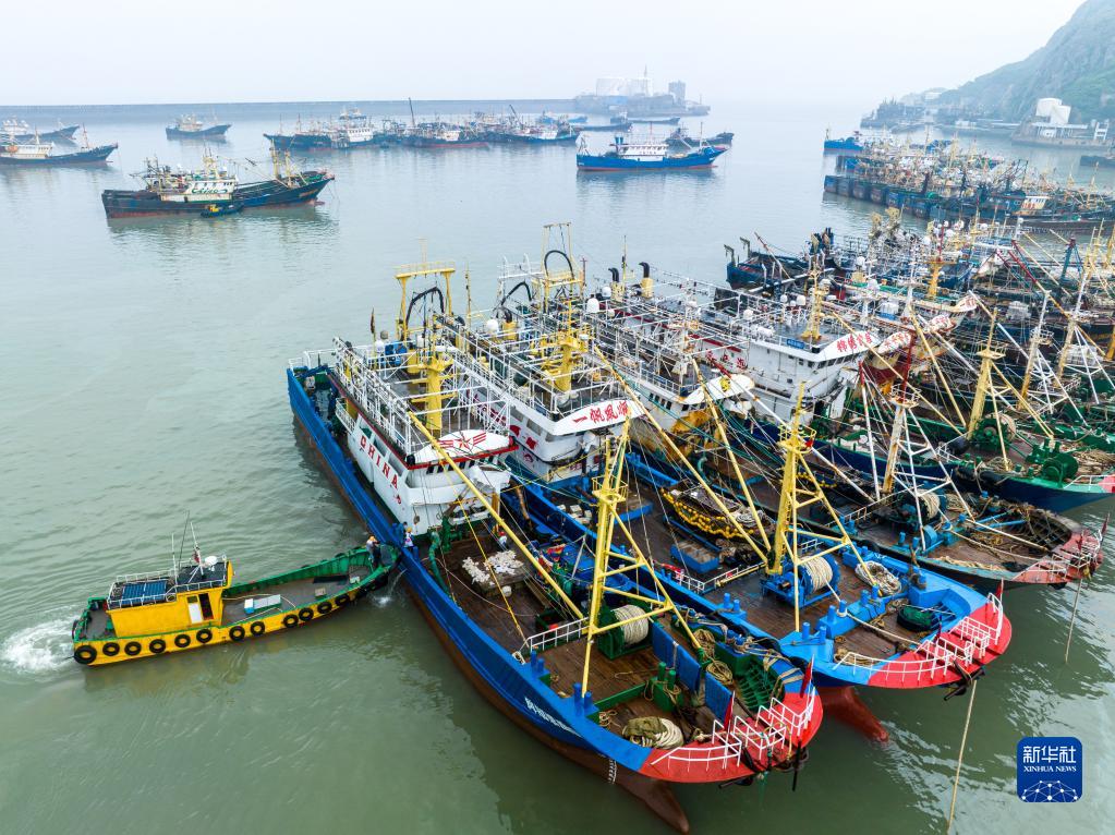 當日,在浙江省溫嶺市石塘鎮,漁船陸續進港停靠,迎接即將到來的休漁期。
