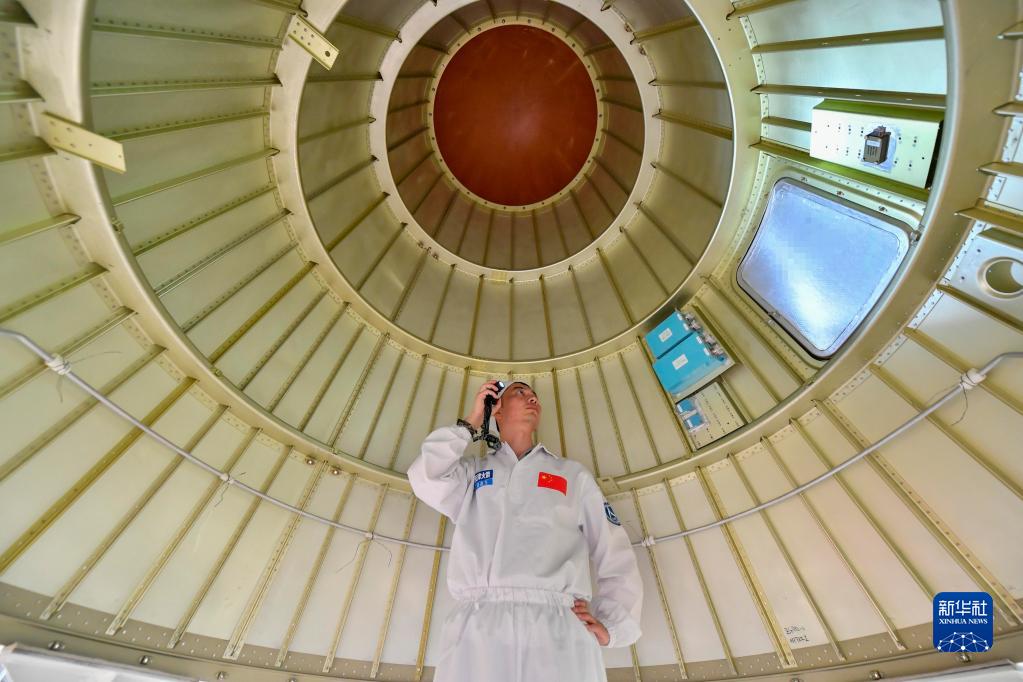 4月19日,在航天科技集團一院天津火箭公司總裝測試車間,駱鑫生認真核查火箭某部件。