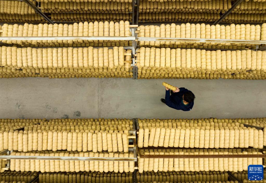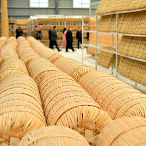 4月29日,消費者在湖北省宣恩縣一家黑茶企業的黑茶晾曬場參觀。