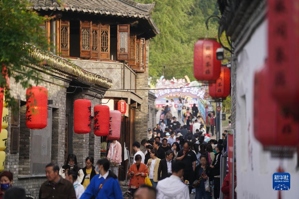4月29日,市民和游客在盱眙縣第一山歷史文化街區(qū)游玩。