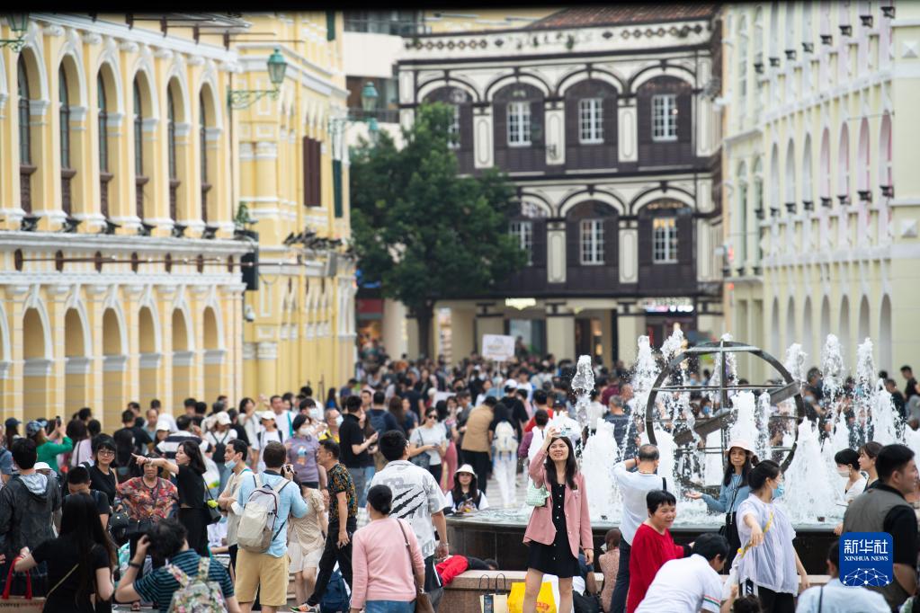 當日是“五一”假期第一天,澳門議事亭前地、大三巴牌坊等景點游客如潮。