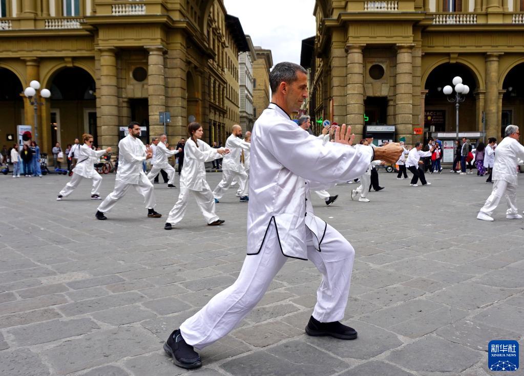 4月29日,在意大利佛羅倫薩,當地太極愛好者打太極拳。