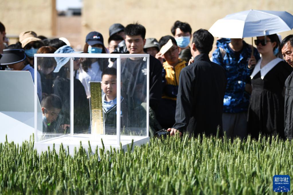 4月29日,游客在“只有河南·戲劇幻城”內(nèi)觀看“麥田里的博物館”展覽。