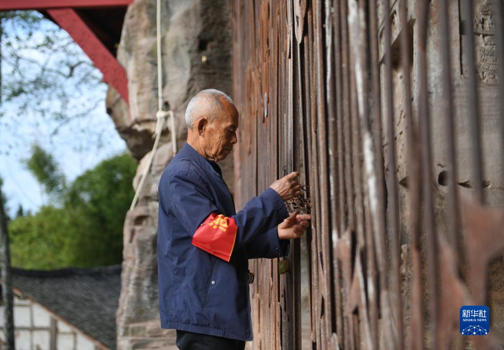 4月3日,吳忠富在臥佛院內巡查。