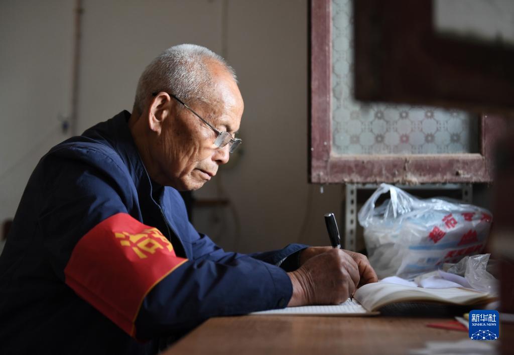 4月3日,吳忠富在記錄巡查情況。