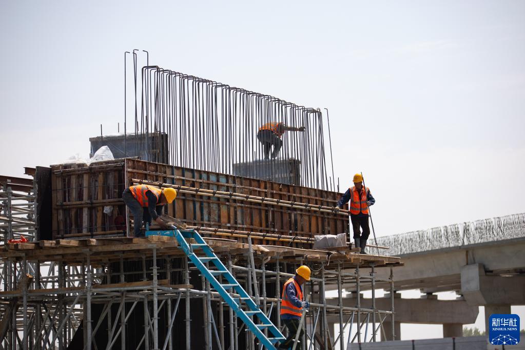 4月30日,在山東省東青高速公路改擴建工程廣饒段新建廣饒互通施工現(xiàn)場,工人們在現(xiàn)場忙碌。